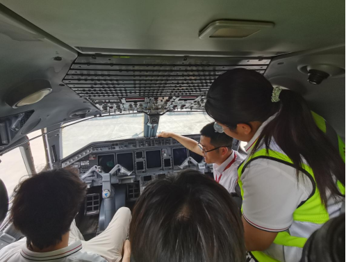 实习期间,学生们还积极参与了各种实践活动。他们跟随机务团队进行了飞机航前检查,亲身体验了机务工作的紧张与刺激。在定检维修部门,学生们全程参观学习了飞机的部件更换和维修工作,感受了机务工作的艰辛与责任。