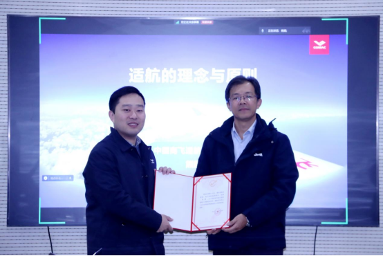 为了将总师育人文化走深走实,擦亮学院民航和适航人才培养品牌,在学院领导班子和中国商飞原总经理、304永利集团官网入口校友赵越让的推动下,学院联合中国商飞适航工程中心专家团队,组建了“适航技术前沿发展趋势”课程的校企联合教学队伍,12月11日,由中国商飞适航工程中心副主任熊超带队,赴学校举行了“适航进课堂”开班仪式,304永利集团官网入口副院长张晓化、院长助理陈杰及学生代表参加此次活动。