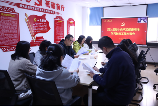 会议传达学习了学校党建工作领导小组暨基层党委(党总支)书记扩大会议精神,组织学习了学校党委《关于开展深入贯彻中央八项规定精神学习教育的实施方案》,要求认真落实学校动员大会精神,高标准高质量完成学习教育各项任务。