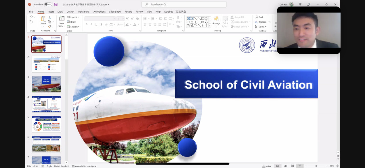 宣讲会上,崔浩教授分别从学院发展历程、师资队伍、人才培养、科学研究、国际合作交流、学生工作等方面介绍了永利集团官网基本情况,随后向参与此次宣讲会的国际学生讲述了民航发展的现状以及形势,鼓励同学们积极关注304永利集团官网入口。国际教育学院张正瑶老师就入学申请相关流程及注意事项进行了说明和补充。最后,参会学生就学科专业、入学申请等方面进行了在线提问,两位老师都给予了详细、耐心的解答。