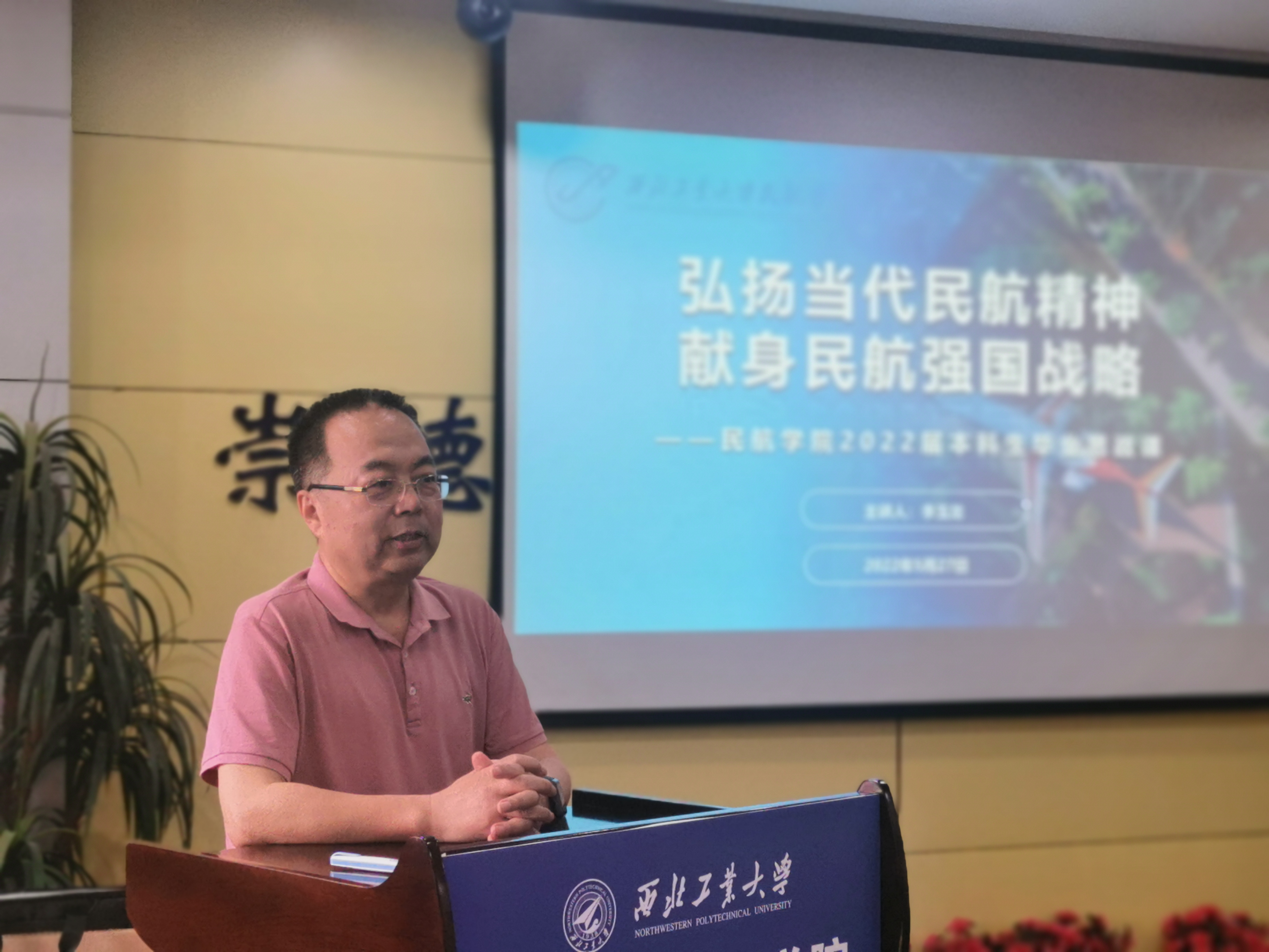 随后,李玉龙院长为毕业生讲授了题为“弘扬当代民航精神,献身民航强国战略”的毕业思政课。他首先向大家讲述了两个故事,一是中国共产党管理运行的第一个机场——延安东关机场的故事,二是新中国成立后中国共产党领导“两航起义”的故事。他希望大家认真学好新中国民航发展史,感悟中国共产党领导我国民航事业取得的巨大成就,进一步坚定理想信念和行业认同,为民航强国战略努力学习、勤奋工作。他还介绍了学院成立三年多来的建设过程、当前情况和未来愿景,希望同学们与学院和老师保持紧密联系,继续关注和支持学院发展,学院也将继续为校友的成长发展提供助力和支持。