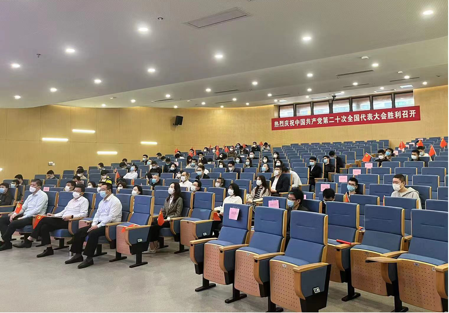 第二教工党支部党员在太仓智汇港教学综合体C区学术报告厅观看开幕会直播