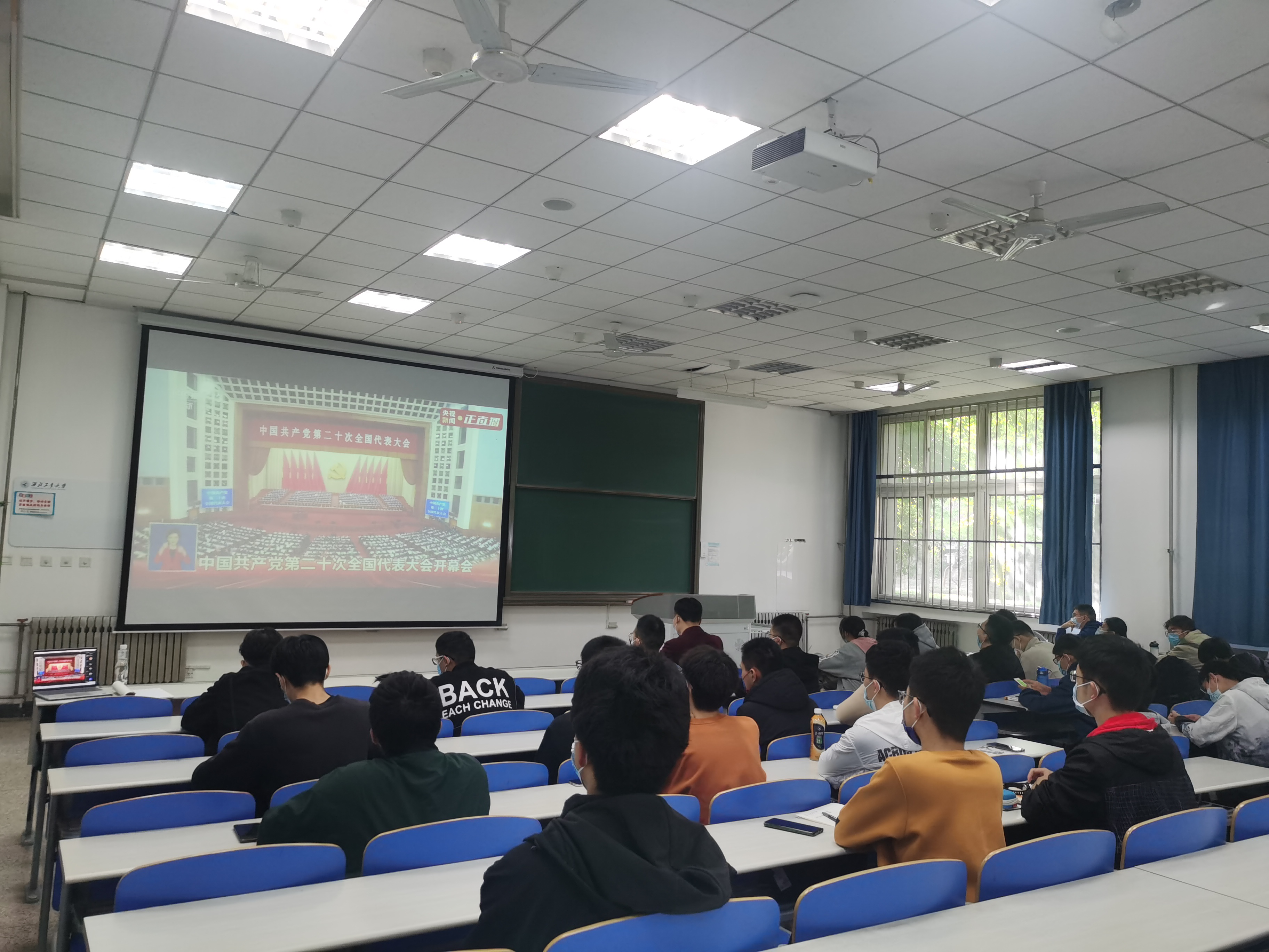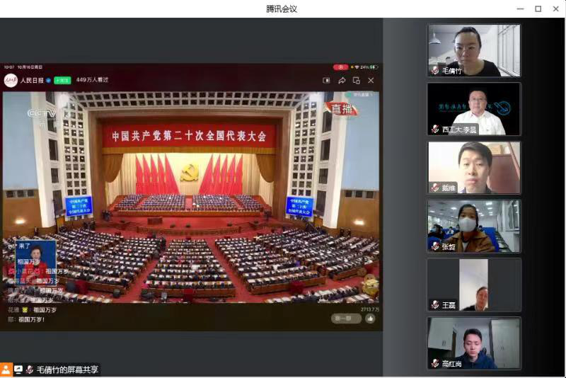 师生党员以教研室和科研团队为单位通过电视、网络等形式收看开幕会直播
