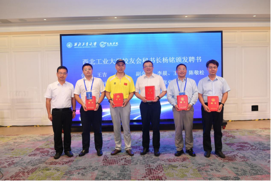 304永利集团官网入口校友会秘书长杨铭为通航分会会长王吉,副会长李晨、王俊、陈敬松,秘书长叶欣桥,副秘书长张传勇颁发聘书,王吉会长致辞。
