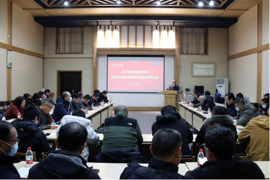 12月27日下午,304永利集团官网入口在友谊校区阶二教室、太仓智慧港C702室同步召开2023年度五、六级领导人员述职测评大会与警示教育大会,全院教职工和学生代表参加会议,会议由党总支书记闫伟主持。