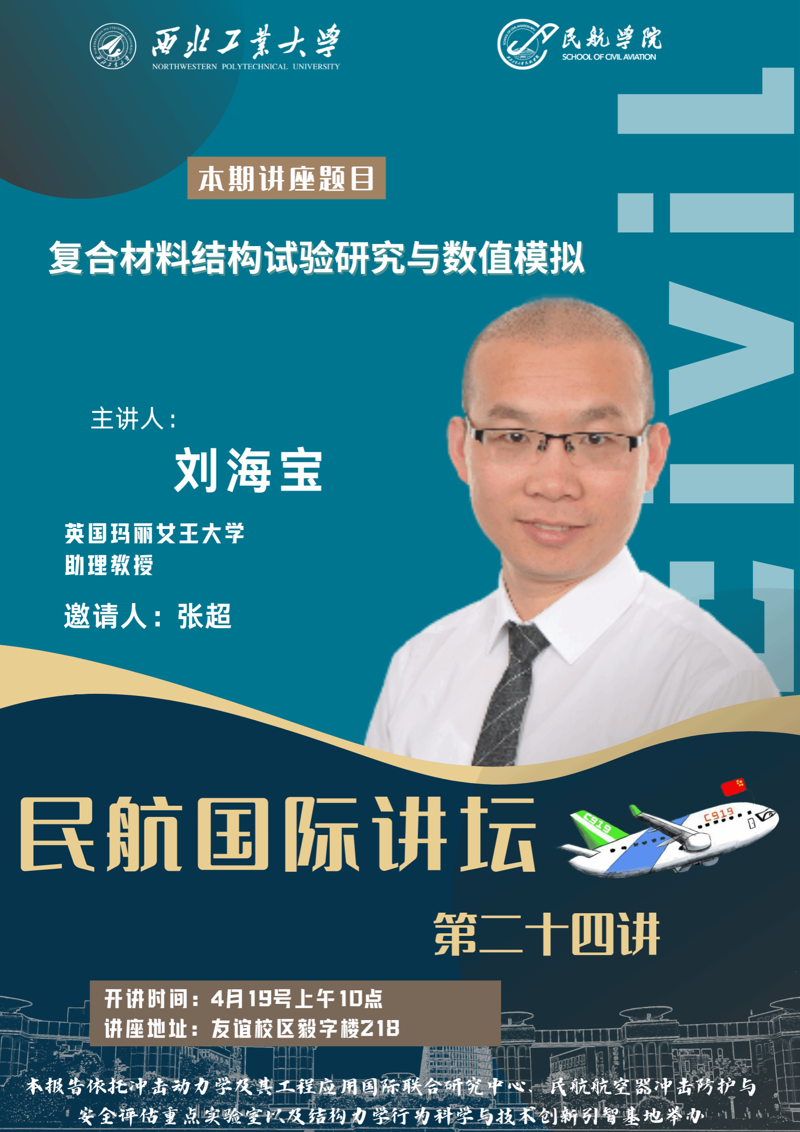 刘海宝,男,工学博士,玛丽女王大学,助理教授。2014 年获庞巴迪-女王大学国际生全额奖学金资助赴贝尔法斯特女王大学攻读博士学位,并于 2018 年获得航空工程博士学位。同年进入帝国理工学院开展博士后工作。2023 年 5 月入职玛丽女王大学航空工程系。主要研究兴趣包括以下三个方面: