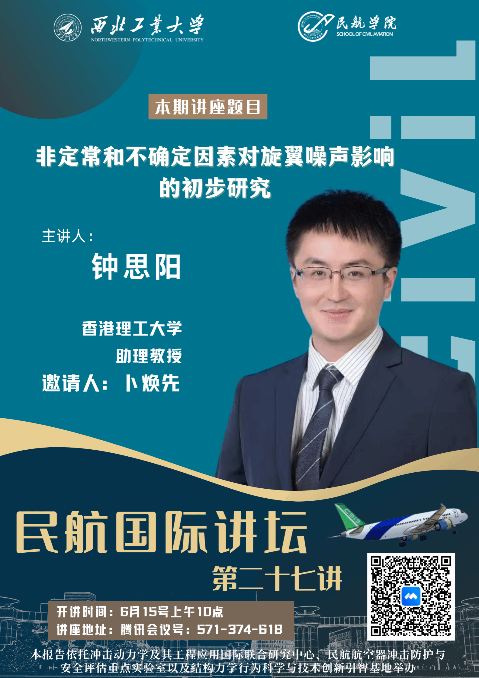 6月15号上午10点,永利集团官网拟线上举办“非定常和不确定因素对旋翼噪声影响的初步研究”专题讲座,届时欢迎各位老师同学参会交流。以下是讲座详细信息: