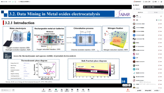 讲座中,贾雪博士首先简要介绍了自己的求学和工作经历。随后,她结合在日本东北大学的研究,深入讲解了数据挖掘与机器学习在新型能源材料设计中的应用。报告内容详实,既涵盖了机器学习的前沿理论与技术,也通过具体案例,系统展示了机器学习在热电材料设计以及数据挖掘在金属氧化物催化剂筛选中的实际流程,极大地拓展了听众的研究视野。