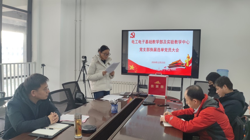 12月23日下午,电工电子基础教学部及实验教学中心党支部换届选举党员大会在学院319会议室召开。会议由支部书记杨丽媛主持,18名党员教师参加会议,学院党委书记贺炳彦到会指导。