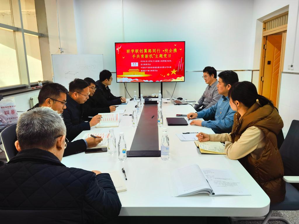 2025年12月4日上午,新葡8883官网AMG官网自动化系党支部与陕西省通信服务有限公司本部集团客户部党支部在自动化系会议室开展“联学联创翼路同行,校企携手共育新机”主题党日活动。陕西通服本部集客部党支部书记白建兵、纪检委员安延松等党员10人、积极分子1人参加活动;新葡8883官网AMG官网党委委员、副院长惠飞,自动化系党支部书记相里康、组织委员孟芸,宣传委员周经美参加交流。