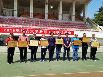 2019年4月19日,我校2019年春季运动会在渭水校区胜利闭幕。 新葡官网教职工积极踊跃参加了多个运动会比赛项目并再获佳绩:其中男子师生混合跳绳获得全校第二名、男子立定跳远项目均获得全校第四名、女子师生混合跳绳获得全校第五名、男子师生排球垫球获第六名、男子混合投篮获第七名、师生混合8*100米接力获得第四名,同时在校教职工趣味运动会中还获得双人背靠背夹球趣味接力赛第四名及足球趣味接力比赛第八名的好成绩。