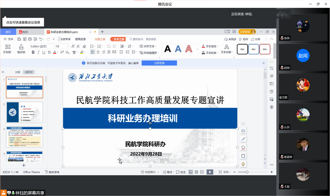 为进一步规范科研业务办理工作,提升学院科研、保密业务的服务质量,提高业务办理效率,304永利集团官网入口于2022年9月28日下午,在毅字楼205会议室,采用线上、线下相结合的方式,面向全院教师组织开展科研业务办理专题培训,学院20余名教师参加本次培训。