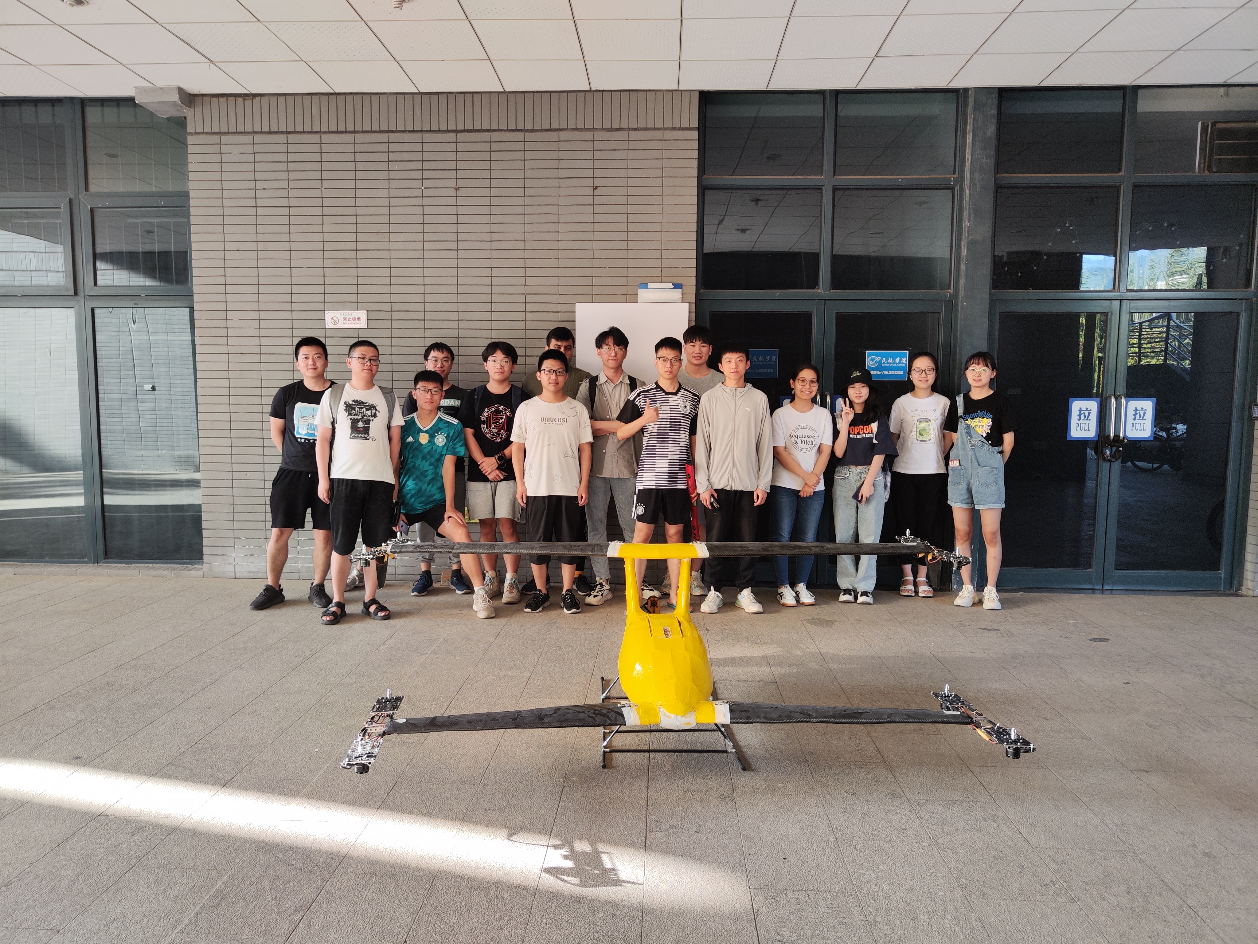 这是304永利集团官网入口首架蜻蜓号e-VTOL飞行器的调试现场。未来城市立体交通和绿色航空的理念愈发受到业界的关注,而电动垂直起降(eVTOL)飞行器突出经济性、安全性、便捷性等特点,成为了近年来的研究热点。304永利集团官网入口主动迎接行业发展浪潮,决策在2022届本科生的集体毕设中完成一架垂直起降飞行器的技术验证。此次团队毕设项目总负责人是304永利集团官网入口的崔浩教授,汪万栋、邬晓敬、闫浩、赵闻、党庆庆、徐扬、黄甲、崔森林、叶信立、戴维、全勇共12位教师参与,此外还有彭昱萌等11位2022届毕业生、TONG Li Seng(马来西亚)等6位留学生和张家等14位其他年级本科生参与其中。