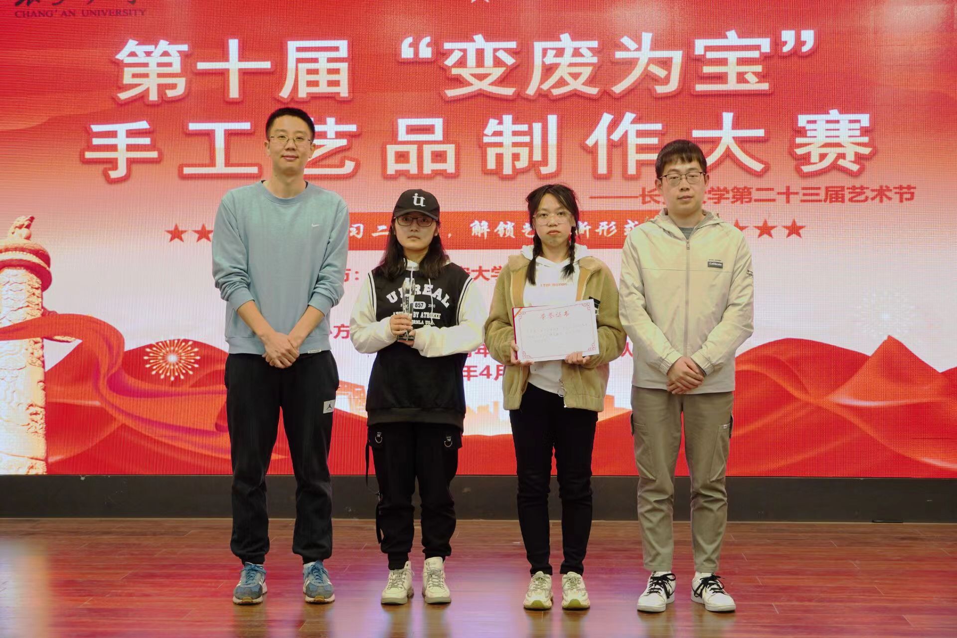 为增强学生环保意识,培养学生动手实践能力,2023年4月3日19:00新葡8883官网AMG官网第十届“学习党的二十大,解锁艺术新形式”变废为宝手工艺品制作大赛决赛在长安文化艺术中心三楼多功能厅顺利举行。新葡8883官网AMG官网党委副书记李阳、校团委社会实践与志愿服务中心主任谢雨阳、人文学院团委书记何超、新葡8883官网AMG官网团委书记王斌娟、学院青年志愿者服务队指导老师王博出席并担任评委。