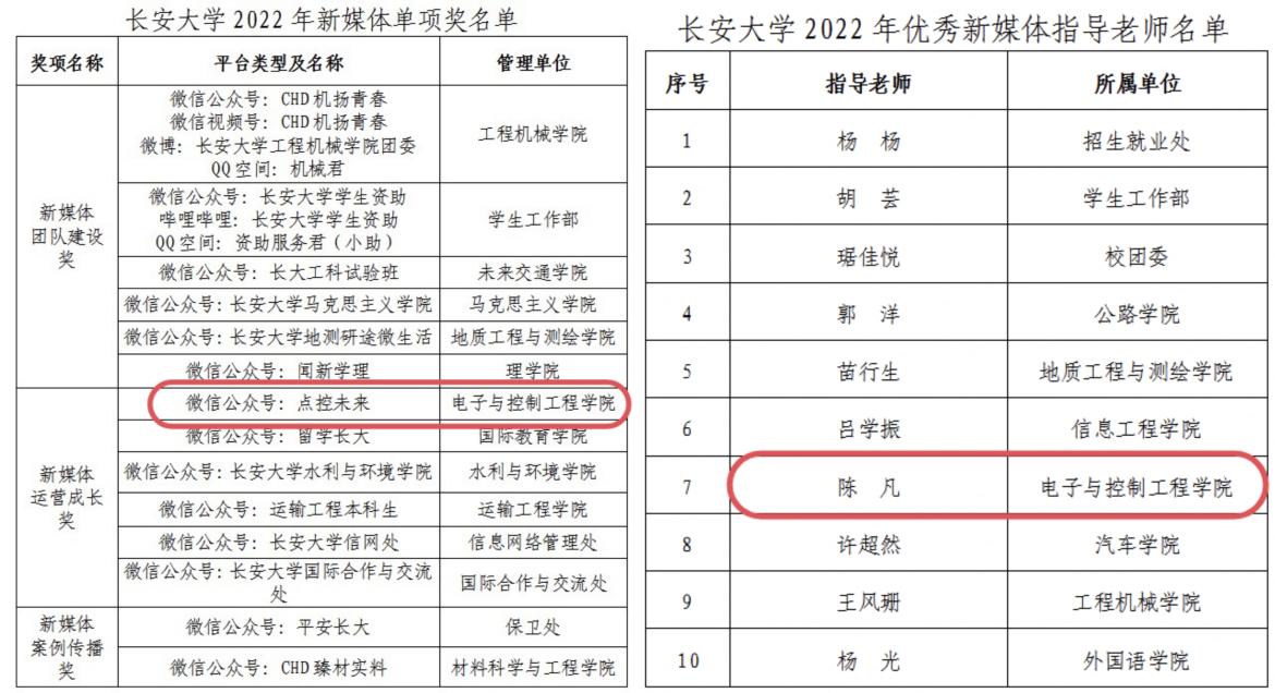 近日,学校党委发布《关于表彰新葡8883官网AMG官网2022年优秀校园新媒体平台及优秀新媒体指导老师的决定》(长大党宣〔2023〕9号),新葡8883官网AMG官网“点控未来”微信公众号荣获“新媒体运营成长奖”,辅导员陈凡荣获“优秀新媒体指导老师”