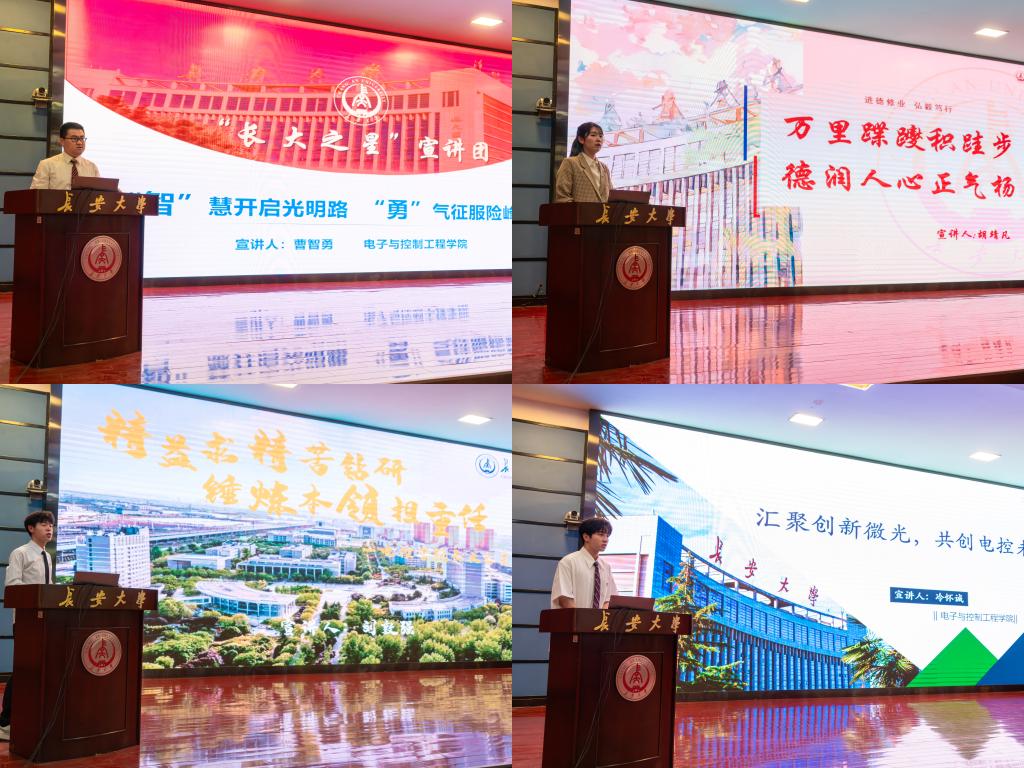 宣讲环节,宣讲团成员曹智勇、胡靖凡、刘敦强、冷怀诚分别围绕课程学习、团学工作、班级建设、科创竞赛等方面进行分享。他们强调了基础课学习的重要性,分享了专业课的有效学习方法、参加科创竞赛的经验体会、如何有效兼顾学习与工作等,激励学弟学妹不畏挑战、勇敢追梦,积极进取、追求卓越。