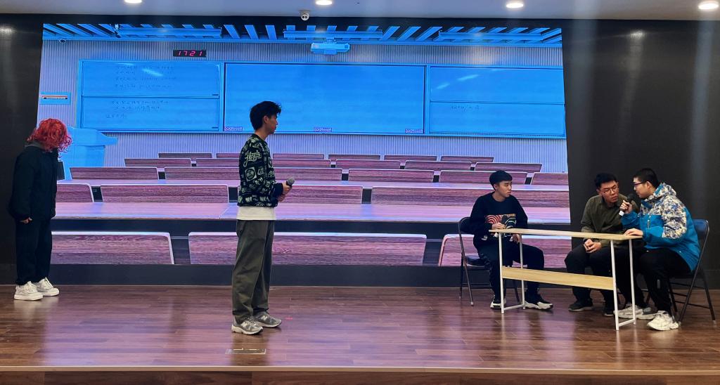 4月15日晚,“从心启航 向阳逐梦”校园心理剧创演大赛决赛在北校区大学生活动中心多功能厅举行。新葡8883官网AMG官网学生积极参与,精心准备参赛作品。在学院彩虹心理协会指导老师许必颖的指导下,由学生自导自演的作品《不,可言说》、《大家都这么说,便是对的吗》,历经剧本筛选、初赛、复赛,最终进入决赛。