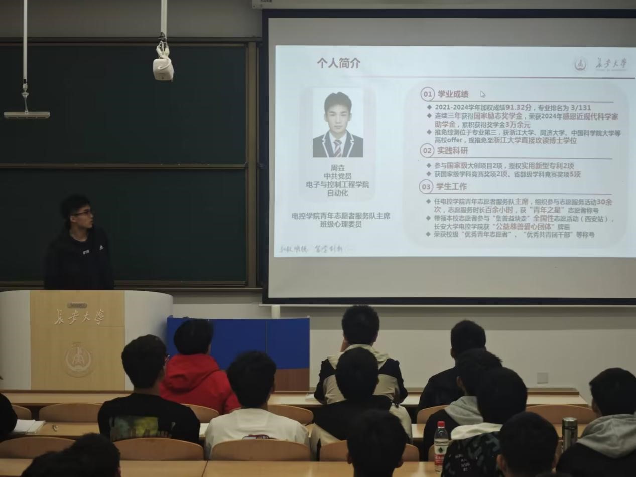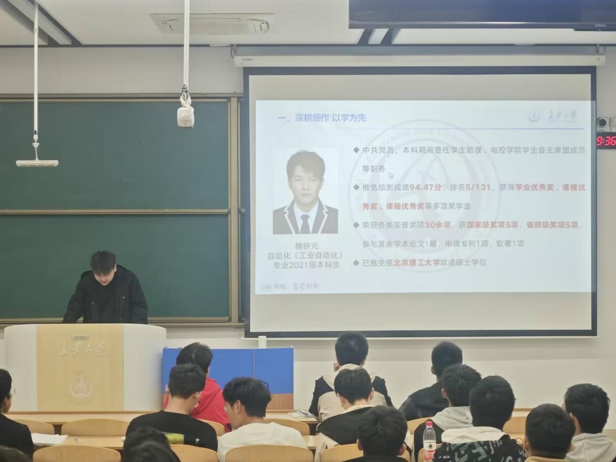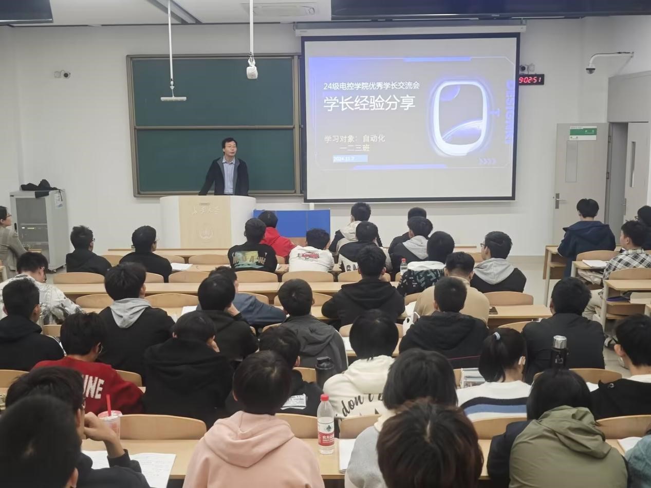 为充分发挥优秀典型的榜样示范作用,营造良好的学习氛围,进一步强化学院学风建设,新葡8883官网AMG官网““优秀学长经验交流会”于11月7日晚上19点在WH1101教室召开,会议邀请2021级保研学生高晓轩、楼钟元、周垚作经验分享,2024320101班班主任周经美,2024320101、2024320102、2024320103班全体同学参加会议,会议由自动化系副主任杨盼盼主持。