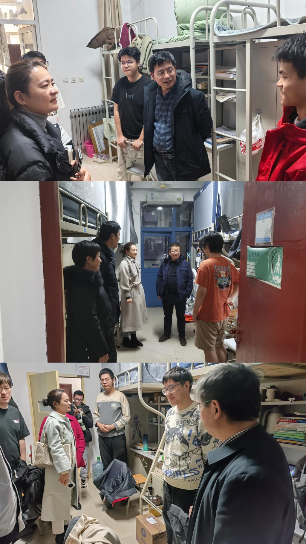学院党委书记贺炳彦、院长闫茂德、院党委副书记高婷婷、副院长龚贤武及全体辅导员深入一线,走访学生宿舍,了解同学们的学业进展、未来规划、心理状态等,提醒同学们要规划好大学生活,注意宿舍用电安全,勉励同学们珍惜大学时光,努力学习专业知识,增强社会实践能力,提高综合素质。