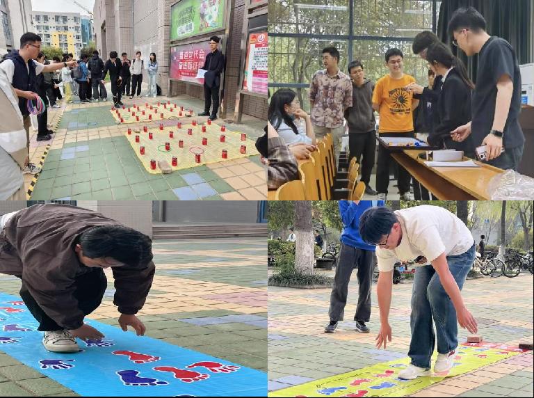 4月11日,大赛进入高潮阶段。迷你冰壶项目比赛在WM1106教室准时举行。在工作人员的有序组织下,选手们依次参赛。最终,32位选手顺利完成比赛,工作人员实时统计分数并排名,比赛圆满结束。同一天,“掷圈寻芳”活动在北校区树慧园广场同步举办。活动现场,摆放整齐的可乐罐等物品成为同学们的目标,大家手持色彩鲜艳的套圈,各展绝技。有的屏气凝神,仔细计算角度与力度;有的信心满满,果断抛出套圈。每当有同学成功套中目标,现场呼与喝彩热烈。