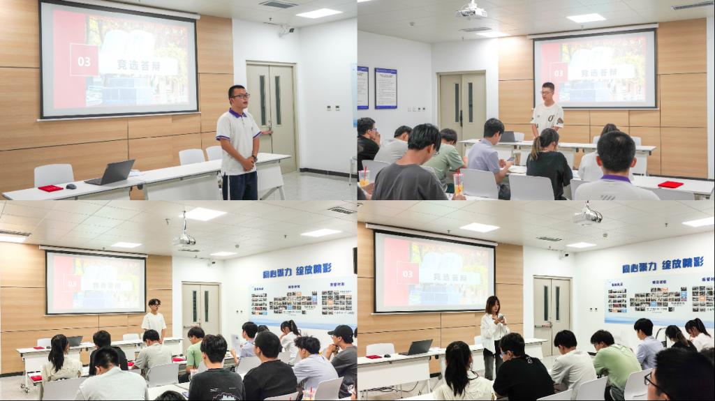 在竞选答辩环节,各部门竞选者依次上台进行答辩,围绕个人能力、工作经历、岗位认知及未来规划等方面展开陈述,充分展示了自身优势,分享了在青年传媒中心工作的收获与成长。