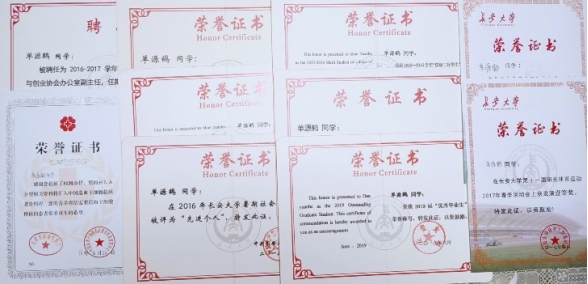 单源鹤在本科期间成绩优异,曾获得霍尼韦尔奖学金、三好学生奖学金、优秀毕业生等荣誉。作为学生,单源鹤一直把课程学习和专业能力作为首要任务,但对她来说最宝贵的财富还是作为学生干部组织学生工作带来的成长。本科期间,单源鹤积极参与学生组织和社团工作,并在大二时担任大学生科技创新创业协会办公室副主任,与大家一同负责组织培训、考核及校科协“家文化”建设工作;留任新葡8883官网AMG官网爱心助学导航站贷勤部部长,与部门同学共同参与整个学院的助学贷款与勤工俭学工作,以自己的微薄力量积极为同学们服务;本科四年间,她也一直担任班级团支书,为同班同学尽心尽力处理好负责的每件事。