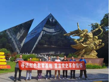 随后在讲解员的带领下,团队一行来到革命烈士公墓前凭吊,全体成员齐唱国歌,向烈士纪念碑行三鞠躬礼,并敬献花篮,表达对革命先烈的崇高敬意和缅怀之情。