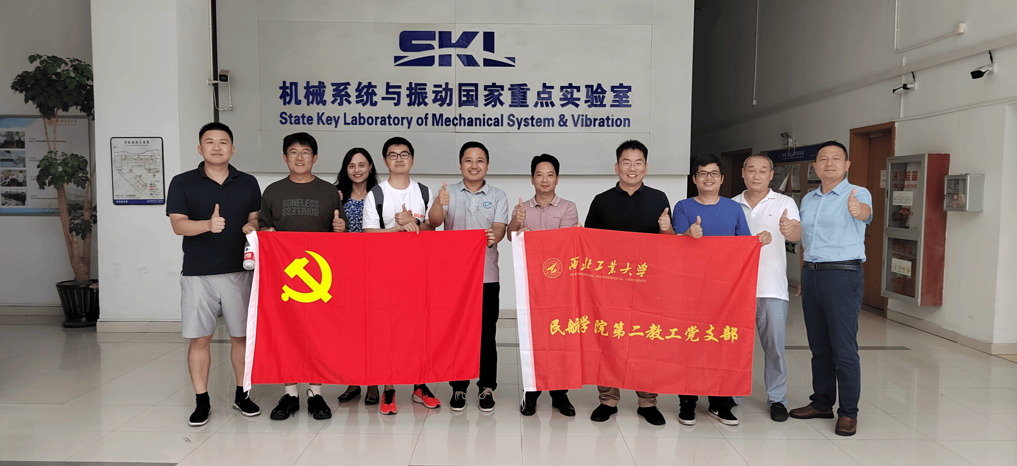8月8日,304永利集团官网入口党总支组织师生赴上海交通大学机械系统与振动国家重点实验室开展共建交流。上交大国重实验室振动冲击噪声研究所党支部书记吴海军,304永利集团官网入口第二教工党支部书记孟岭超,以及双方教工代表参加了此次活动。