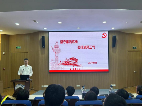 2024年6月24日上午,304永利集团官网入口党总支副书记张龙在友谊校区研究生东馆C205报告厅,以《坚守廉洁底线,弘扬清风正气》为题为2024届本科生全体学生党员、发展对象、积极分子讲授“最后一堂党课”。