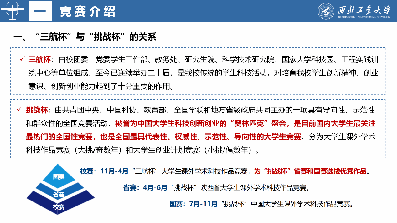 戴维老师从介绍“三航杯”、“挑战杯”开始,逐步深入展开讲述参赛注意事项、评分细则、申报要求,并给同学们分享了优秀案例。戴老师强调选题一定要突出创新性、实用性,参赛一定作品要服务于国家重大需求,要以攻克核心关键技术为目标,更要注重底层理论创新。戴老师分享了自己参加和指导挑战杯比赛的一些个人感悟。鼓励同学们积极参赛,不要太注重最终获奖结果,要注重参赛过程中对自己能力的提升,逻辑思维的锻炼,意志品质的锻炼,要享受参赛过程所带来的自我升华。