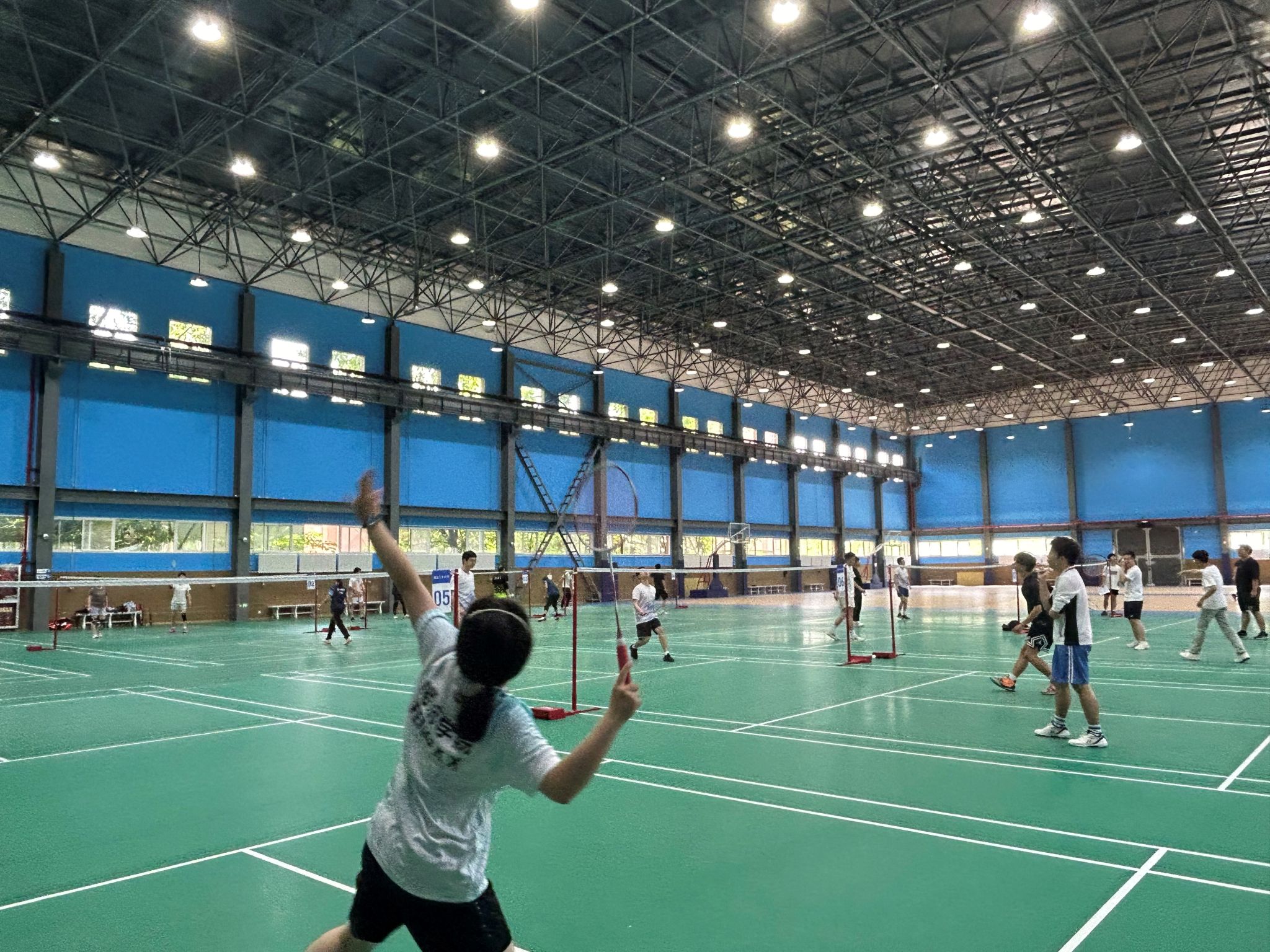 本次羽毛球比赛包括男单、女单、男双、混双四个项目,乒乓球比赛包括男单、女单两个项目。经过一天的激烈竞争,各项比赛共18位同学脱颖而出。