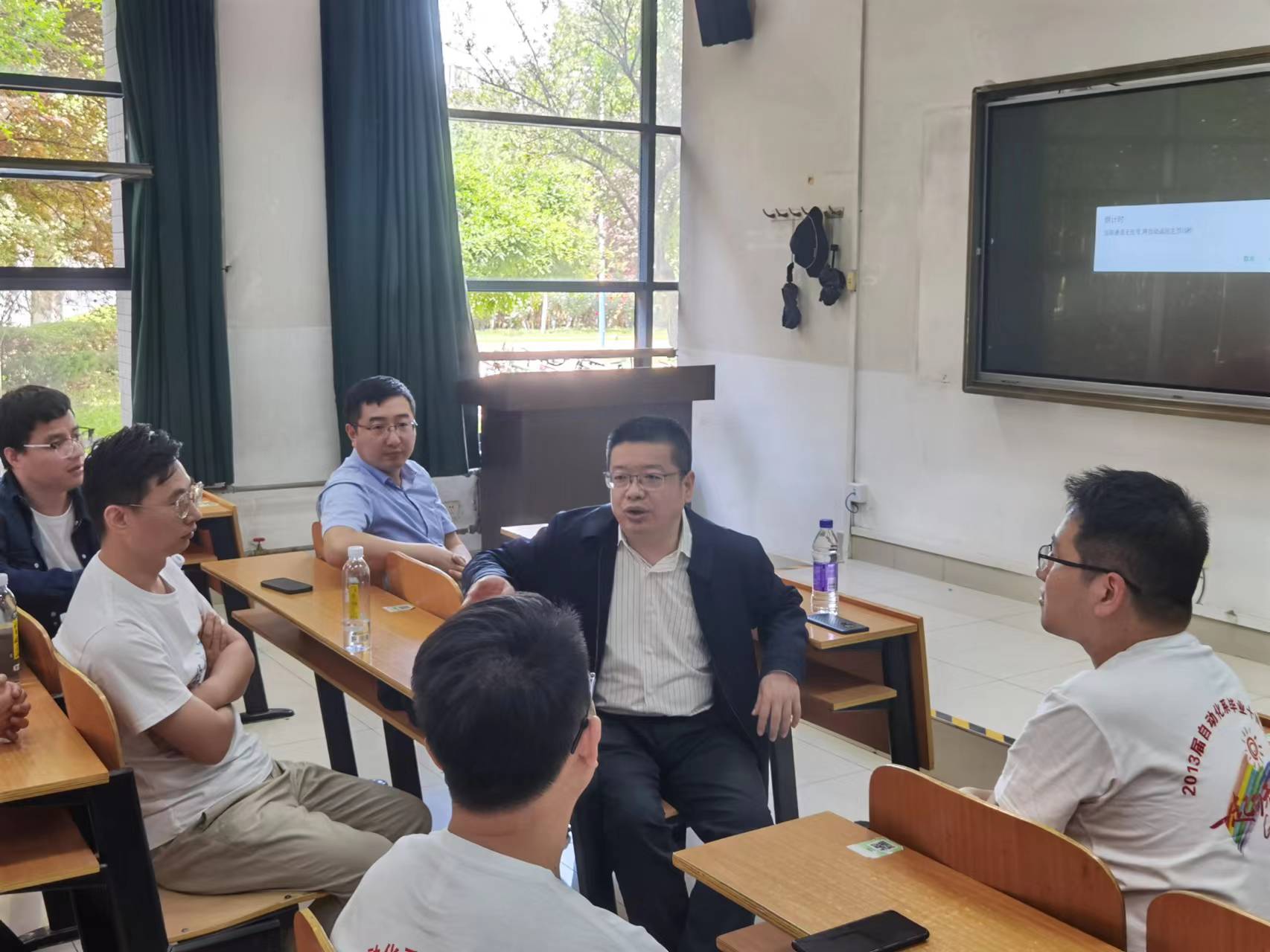 在昔日的教室中,校友们畅叙情谊,追忆往昔,寄望未来,依次回忆了自己在校求学的成长经历,介绍了自己毕业后的工作经历,对学校学院的培养教育表示衷心感谢,为学校学院的发展变化感到骄傲和自豪,表示将牢记母校培养之恩,不忘初心、努力奋斗,用实际行动为母校的建设发展添砖加瓦、贡献力量。