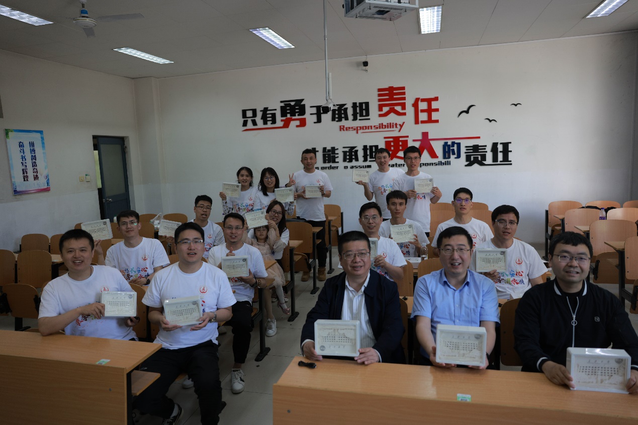 闫茂德、李阳为校友们赠送了具有学校标识和元素的文创用品,欢迎校友们“常回家看看”。