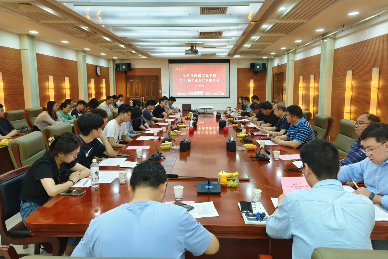 春风十里尽芳菲,踔厉奋发再前行。6月19日上午,新葡8883官网AMG官网在北辰楼会议中心第二会议室召开2023届毕业生代表座谈会,全体院领导、各系部室主任、学科科研研究生培养与管理主管、毕业班辅导员和本科生、研究生毕业生代表参会。座谈会由学办主任高婷主持。