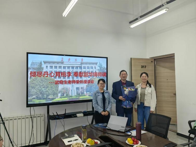 武奇生教授从教三十八年,曾获评陕西省优秀教师、陕西省高等学校教学名师等荣誉,先后出版教材5部,荣获国家教学成果二等奖1项、陕西省教学成果特等奖2项,为新葡8883官网AMG官网的发展做出了重大贡献。武老师感谢学院党政领导和同事们的深切关怀,回忆了在学院专业建设及学科发展过程中难忘的点点滴滴,并向学院致以美好的祝愿。