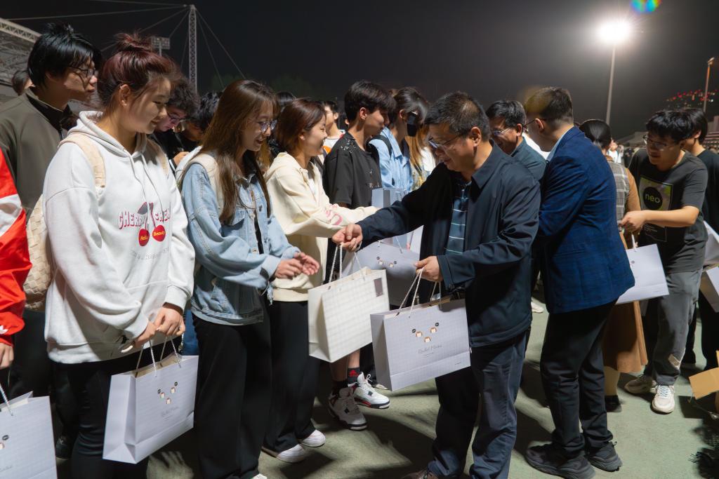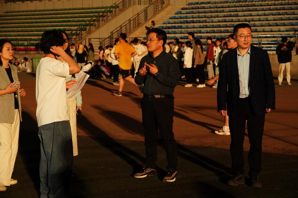 4月11日晚,新葡8883官网AMG官网党委书记贺炳彦、院长闫茂德、党委副书记李阳及全体辅导员来到北校区朝晖体育场慰问学院2024年春季运动会备赛运动员并指导训练。