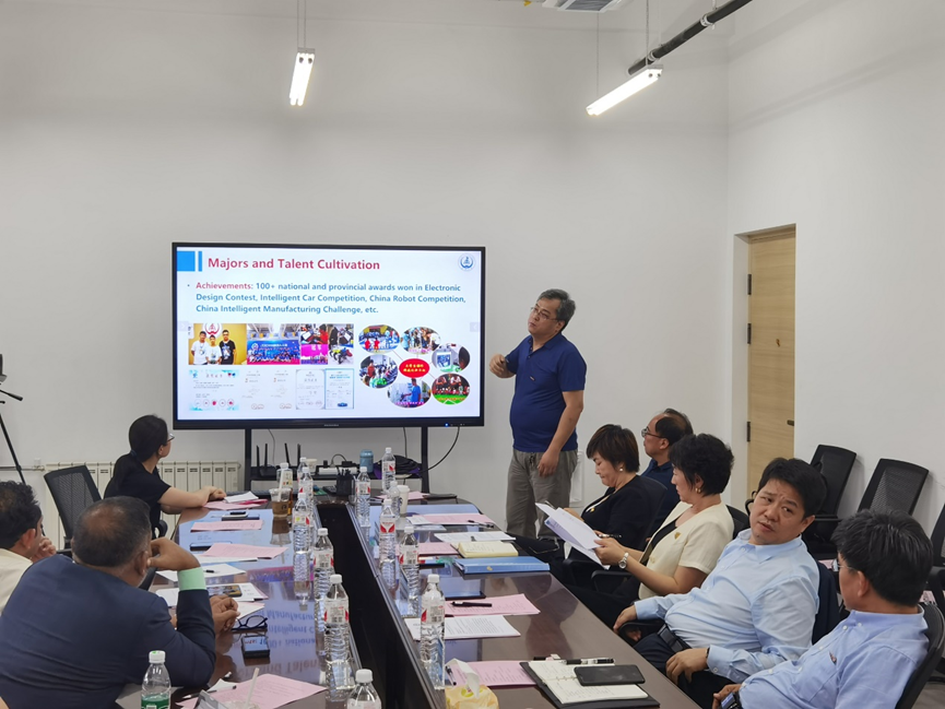 ALI NAJEEB校长一行听取了学院专业建设情况报告。报告详细介绍了学院的教育理念、专业特色以及近年来在教学和科研方面取得的成就,展示了学院在控制科学与工程、交通运输工程等学科的深厚底蕴。