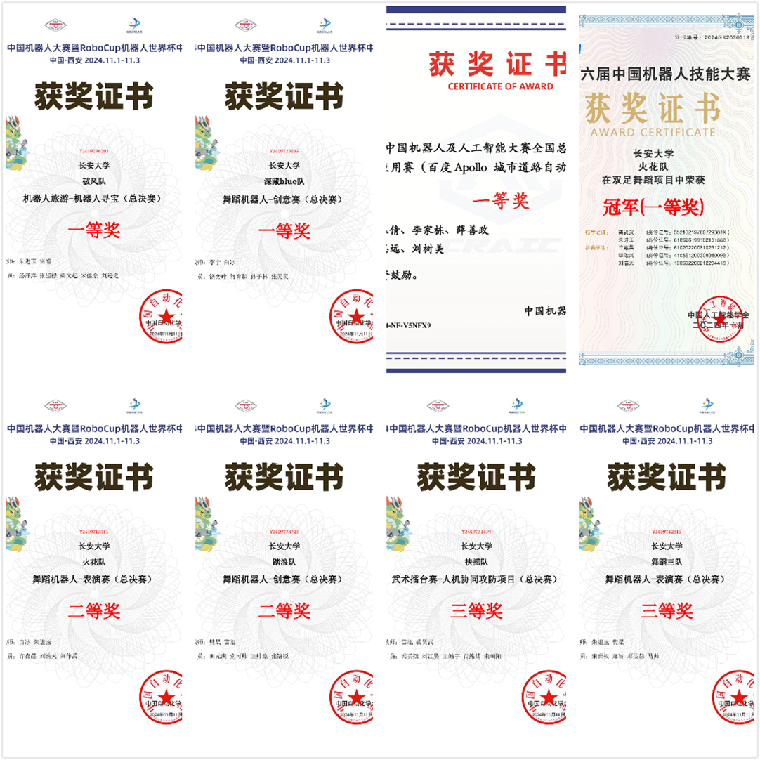 中国机器人及人工智能系列大赛作为教务处重点立项支持的学科竞赛之一,由新葡8883官网AMG官网负责承办。本年度大赛启动以来,新葡8883官网AMG官网高度重视和支持备赛工作,积极配备资源,广泛宣传动员,在机器人俱乐部的具体组织下,经过竞赛宣传、校内选拔赛、暑期集训、校内专项赛等系列环节,最终选拔40支队伍参加系列比赛,共获得27项国家级奖项(获奖率67.5%)。此次赛绩充分展示了长大学子在机器人领域的卓越工程能力及创新实践能力。自中国高等教育学会2019年开始发布“全国普通高校大学生机器人竞赛指数”后,我校已连续5年获评TOP A等级,位居陕西省高校第三位,有效支撑了相关专业和学科建设。