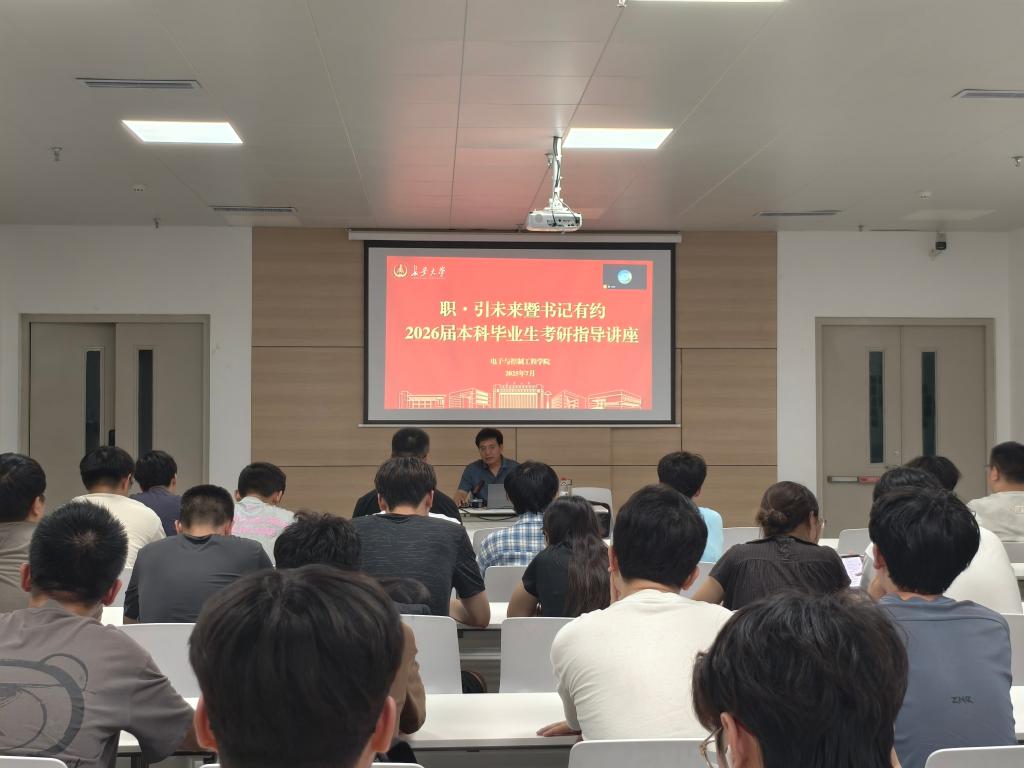 为帮助2026届本科毕业生全面把握考研形势,科学规划报考方向,提升备考效率,7月15日晚,新葡8883官网AMG官网在明德园智通大厦216创客基地举办“职·引未来”暨书记有约——2026届本科毕业生考研指导讲座。院党委书记贺炳彦担任主讲,2022级辅导员李慧及线上线下150余名学生共同参与。