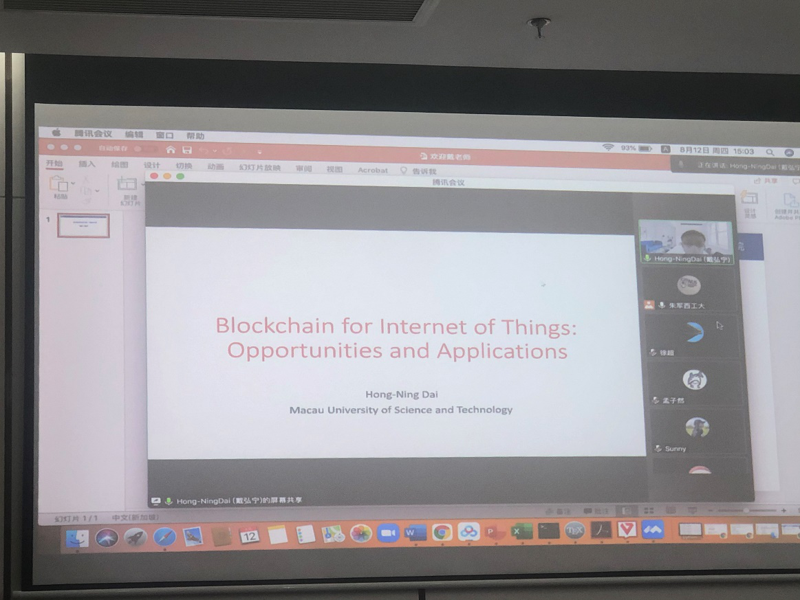 应304永利集团官网入口朱军副教授邀请,澳门科技大学戴弘宁副教授于2021年8月12日下午15:00至18:00开展了题为“Blockchain for Internet of Things: Challenges, Opportunities, and Applications”的线上讲座,来自304永利集团官网入口、湖南大学、日本东京大学、英国兰卡斯特大学等高校的师生通过腾讯会议参与了本次讲座。此外,本次讲座在太仓长三角研究院设立了线下会场,来自304永利集团官网入口、软件学院、微电子学院的20余名师生参加了此次讲座,并与主讲人进行了互动交流。