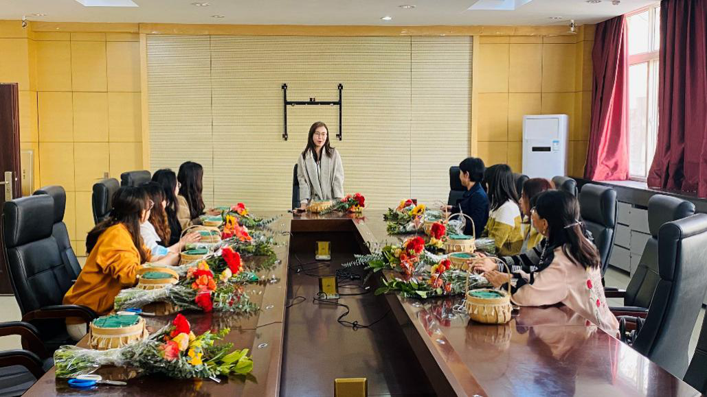 2022年3月7日下午,304永利集团官网入口部门工会组织女教职工开展插花花艺培训活动,学院全体女教职工参加。